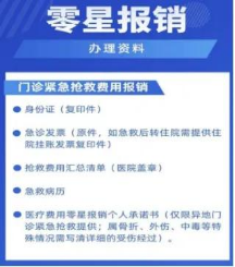 报销所需材料:①门诊病历②发票(电子发票需电子发票承诺书)③费用清单(须医院盖章,发票金额与费用清单须一致)④身份证复印件⑤零星报销个人承诺书(写清异地就医或本地就医未挂账原因及详细受伤经过)⑥银行卡复印件(备注上姓名、开户行支行行名及卡号信息)。