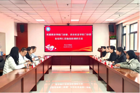 为进一步提升高校医疗卫生服务水平,深化校际医疗合作与经验互鉴,3月13日下午,西京学院门诊部主任武亚莉、护士长李绵、预防保健科主管袁颖华,西安欧亚学院门诊部主任杨定、护士长张英一行来校医院开展调研交流。西北大学医院院长赵琦,副院长王军、张晓斌,及相关科室骨干陪同并座谈。座谈会由赵琦院长主持。